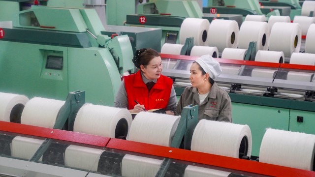 3月16日,乌苏市组织党员干部走进旭恒佳(乌苏)纺织有限公司生产一线听取意见建议。近年来,乌苏市扎实开展政策上门讲、意见上门听、服务上门办“三上门”服务,精准解读政策、用心解决急难愁盼、全力破解发展梗阻,助力企业高质量发展。李仁锡摄