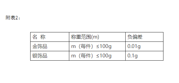 银饰品:每件不超过100g的,交易负偏差不得超过0.1g。
