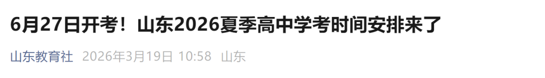 @泰安考生!6月27日开考!山东2026年夏季高中合格考时间安排来了