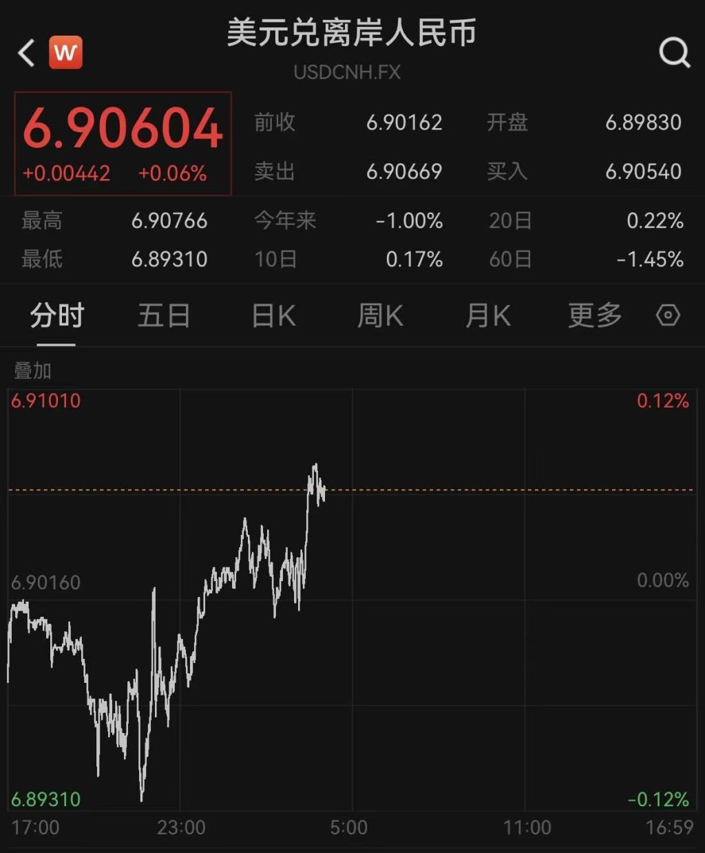 更多反映国际投资者预期的离岸人民币对美元汇率3月19日同样跌破6.90关口,截至发稿,盘中最低跌至6.90766。