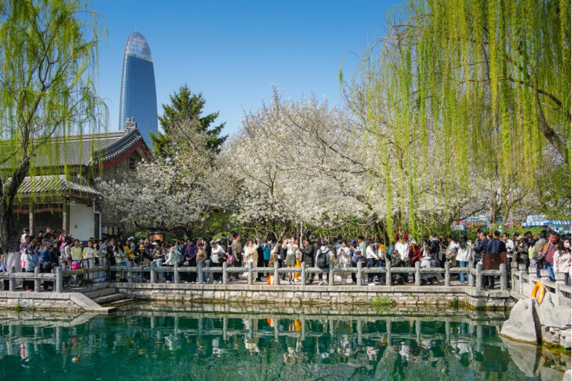 春光烂漫,五龙潭的樱花即将缀满枝头。粉白的樱花与碧绿的泉水交相辉映,古建飞檐在花影潭光中更显古朴典雅。每一帧画面,都是泉城春日独有的限定诗意。