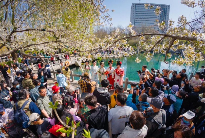 据了解,活动以“樱韵满园 花醒龙潭”为主题,以赏花游园为主线,创意呈现樱花主题美食、樱花主题市集、樱花主题妆造、非遗手作、泉水文创等特色体验,结合春日泉畔主题演艺、汉服巡游、民俗表演、氛围打卡等配套内容,打造沉浸式的浪漫游园体验和主题消费场景。
