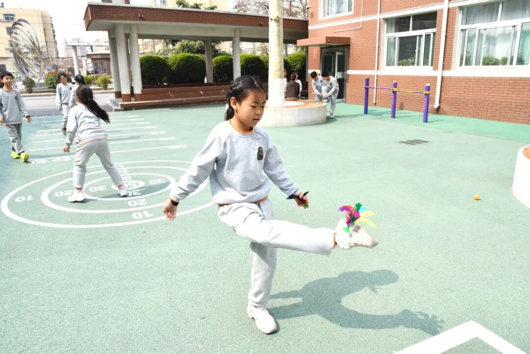 除了体育课程,学校同样重视每一次课间的价值。为了让“课间15分钟”更加充满活力,小学部为每个班级配备了“运动百宝箱”,包括滚铁环、降落伞、毽子、沙包等小型器材。