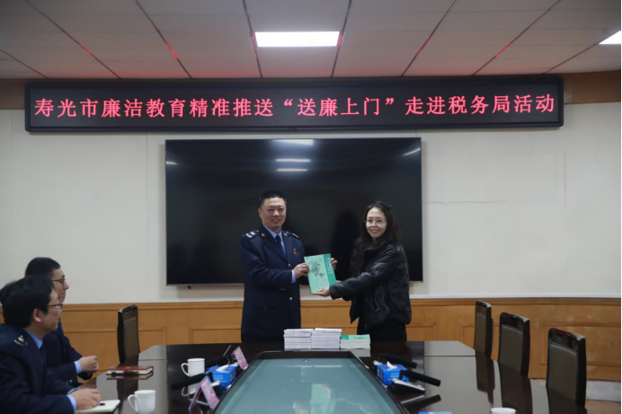 近日,寿光市纪委监委启动廉洁教育精准推送“送廉上门”活动,首站走进寿光市税务局,通过赠送廉洁教育读本、开展座谈交流,为税务干部送上定制化廉洁教育内容。