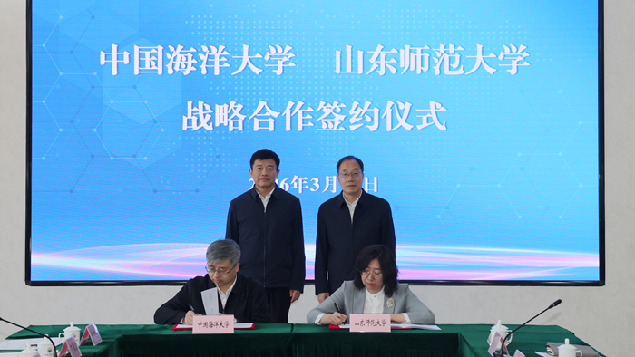 李明介绍了中国海洋大学事业发展情况。他指出,山东师范大学是新中国成立后山东省成立最早的本科高校,素有“齐鲁教学名师,半数出自山师”的美誉,近年来在一流学科创建、人才队伍建设、服务区域发展等方面取得显著成效,为教育强省建设作出了重要贡献。他表示,此次签署战略合作协议,标志着双方合作迈入新阶段,两校将围绕学科建设、师资队伍建设、科学研究等领域深耕务实合作,携手服务国家重大战略,助推山东经济社会高质量发展,共同谱写新时代校际合作新篇章。