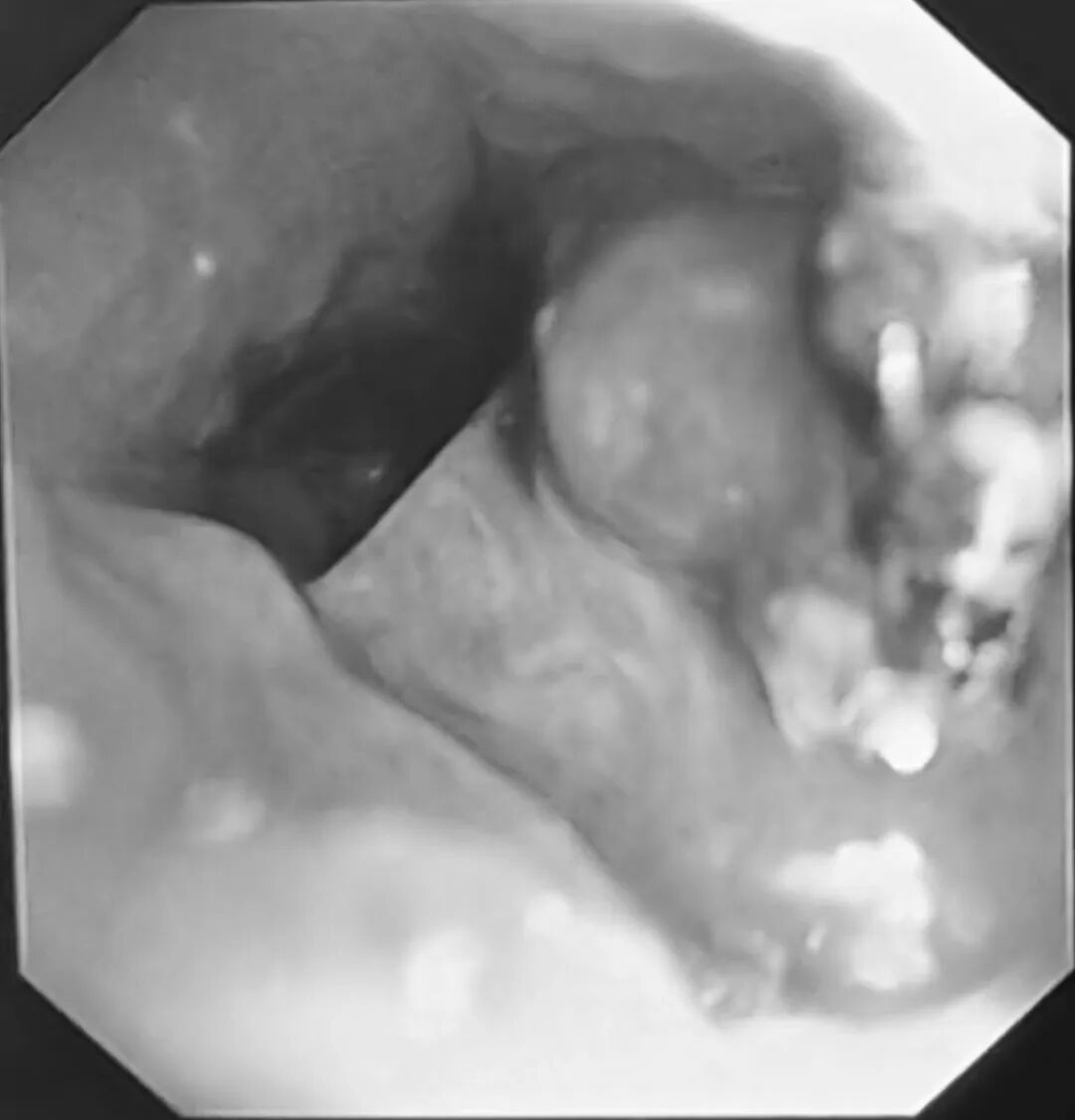 三个月的时间,人体自身的防御机制试图将这个“不速之客”包裹起来。增生的肉芽组织像绳索一样,把图钉牢牢缠住,周围黏膜充血水肿,轻轻一碰就容易出血。