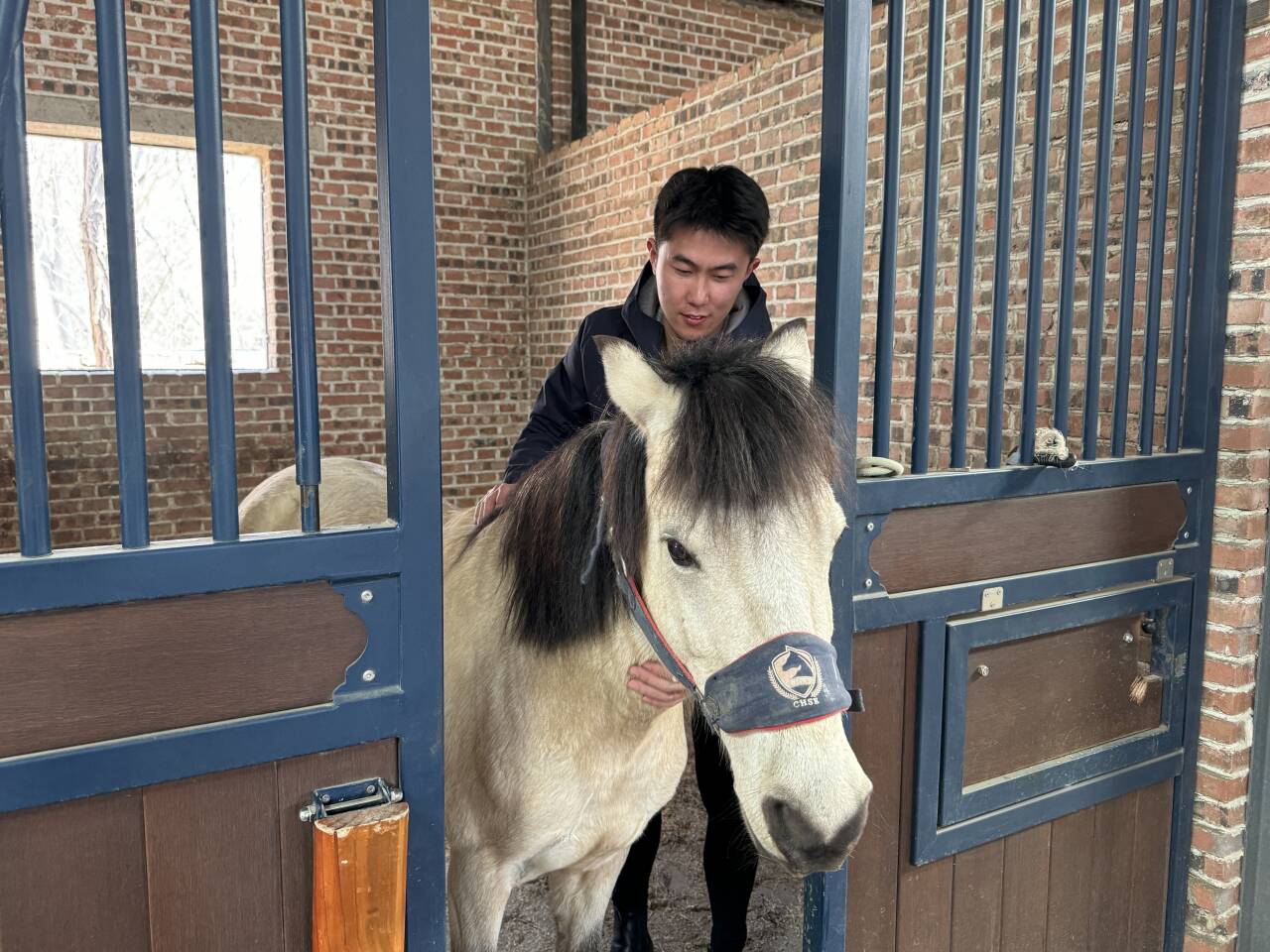 而真正让学生坚定选择这一专业的,是与马的深度羁绊。利小将至今记得那匹名叫“奶茶”的小马:“它是一匹敏感的马,我第一次骑它时,场地外一声巨响,它直接带着我‘放飞机’——就是马匹突然失控狂奔,我根本拉不住。”那次经历后,她许久不敢再靠近“奶茶”,当她自认能力有所提升后,鼓足勇气再次骑上这匹马,那种教练口中“人马合一”的默契与共鸣,成为刻在她心底的温暖记忆。2022级学生张锦轩则对一匹叫“青花瓷”的障碍马印象深刻:“我给它修蹄的时候,它总会用马嘴去碰我的背,还咬我的腰带,就像在跟我玩。”