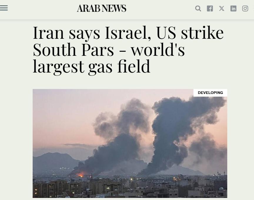 多家国际媒体在报道此次袭击时都提到,以色列和美国袭击了世界上最大的天然气田。