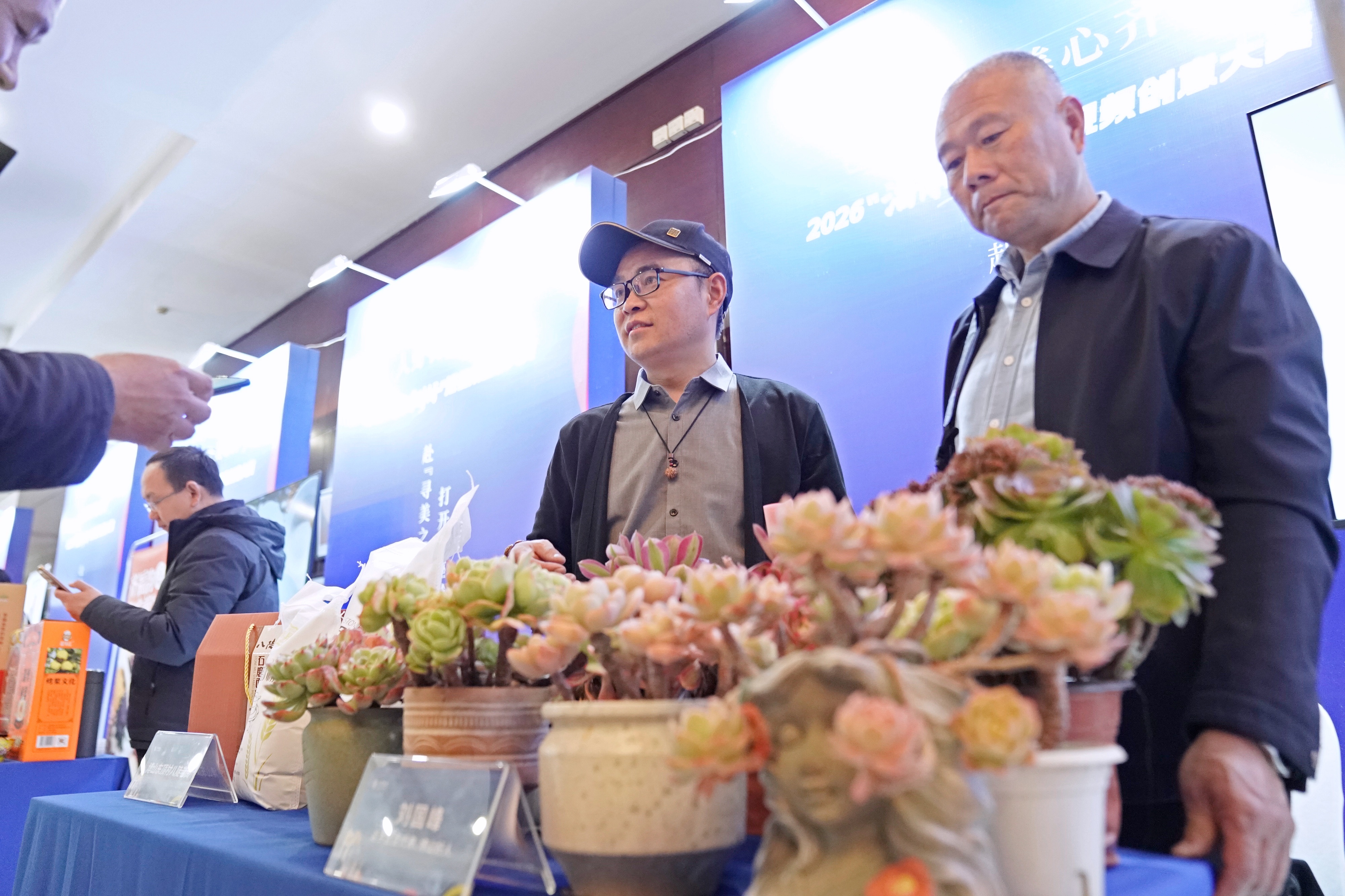 在“人好”主题展区,淄博市返乡创业代表、“博山好人”刘国峰带来了他精心培育的多肉植物,如稀缺的法师缀化、白凤、红宝石、三色堇、丝绸面纱……一盆盆形态各异、憨态可掬。从用镜头记录乡愁到让民宿梦想落地生根,刘国峰感触颇深:“从乡亲们的无私帮助到当地政府的全力托举,这份真诚与热心,是我收获的最珍贵财富。”他表示,经营多肉和民宿是事业,但用镜头记录、与乡亲们共同擦亮家乡名片,才是他不变的初心。“诚挚邀请大家来博山池上镇走一走,来验证我镜头下的真实,感受什么是真正的‘人好、物美、心齐’,来寻找那份能让内心安宁的‘家’的感觉。”