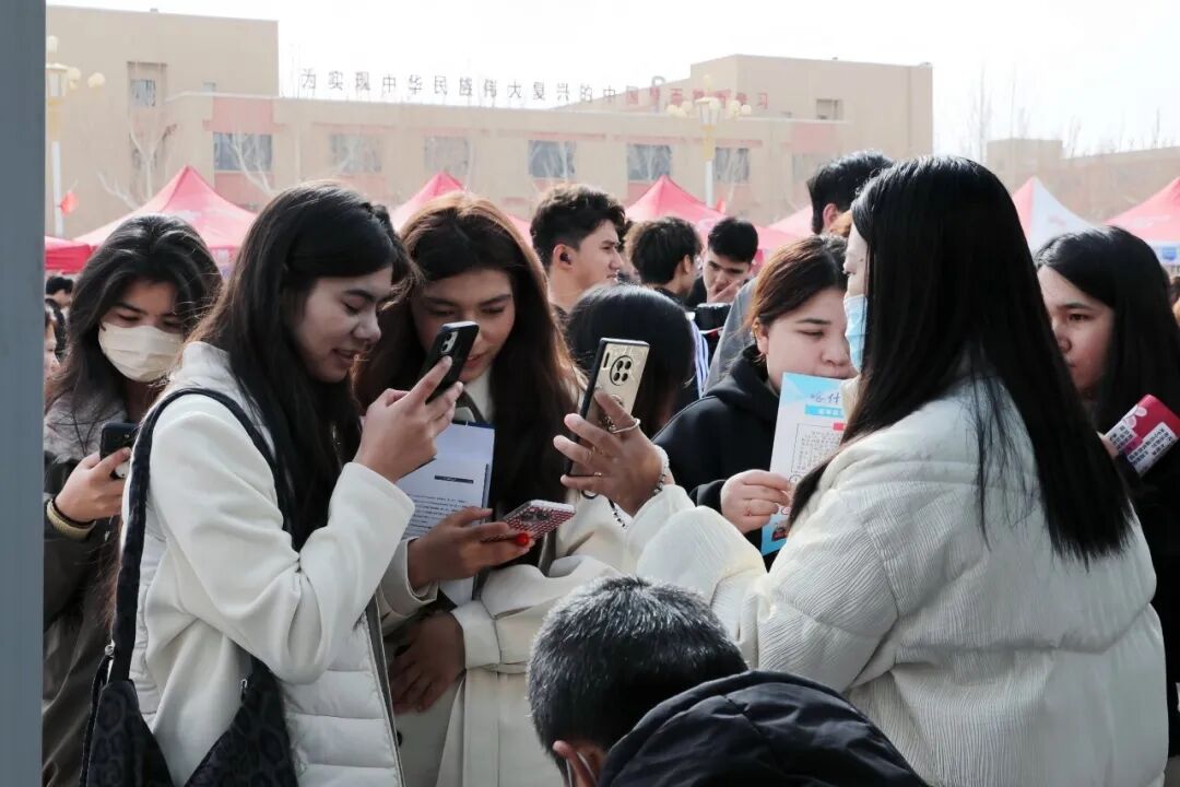 喀什职业技术学院校园招聘活动现场,学生正在添加企业HR微信。喀什地区融媒体中心 实习记者尉旭升 摄