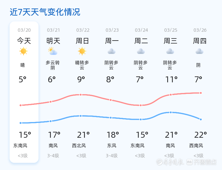 温馨提示本周枣庄市天气以晴到多云为主,气温逐渐回升,但昼夜温差较大,市民需注意保暖。明日风力较大,出行时应远离广告牌等高空悬挂物,防范大风带来的安全隐患。未来三天,气温将逐步升高,市民可适当减少衣物,但早晚仍需注意防寒保暖。春分时节,万物生长,市民可多进行户外活动,享受春日美好时光。