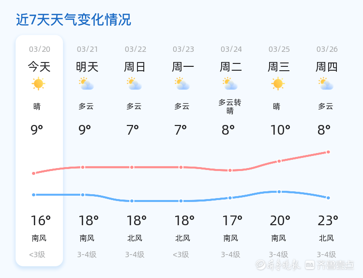 春分时节聊城市天气晴朗,未来三天多云为主