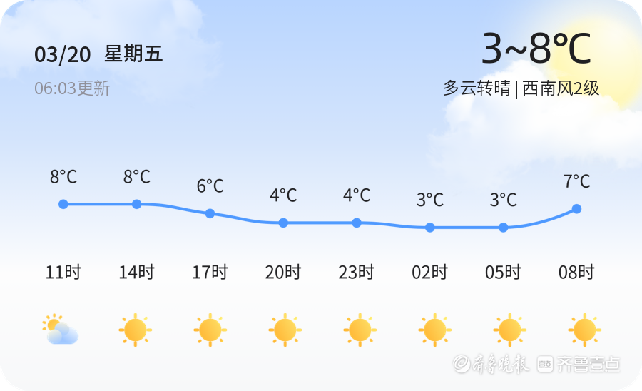 未来三天,烟台市天气以多云为主,偶有阴天,气温波动较大。21日多云转阴,最高气温18℃,最低气温8℃,风力较大,市民出行需注意防风保暖。22日多云,气温7℃至18℃,风力减弱。23日阴,气温3℃至14℃,天气转凉,市民需及时增添衣物,预防感冒。