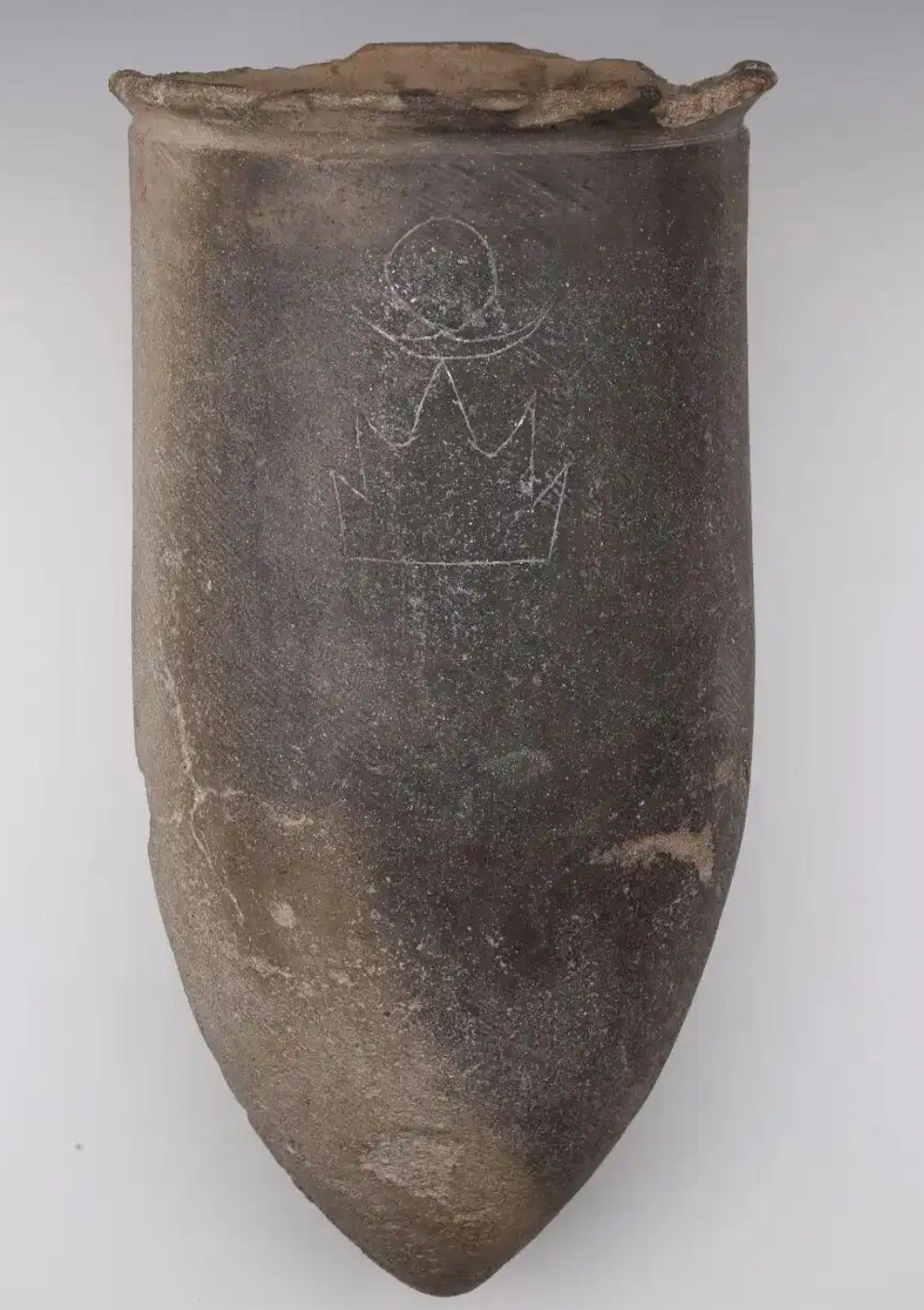 在大汶口文化遗址出土的尖底大口尊上,刻画了一种非常特别的图案,上方是圆圆的太阳,下方是山峰,中间则像是一弯新月,考古人员称之为“日月山”,尤以莒县陵阳河遗址发现的图案最为典型。