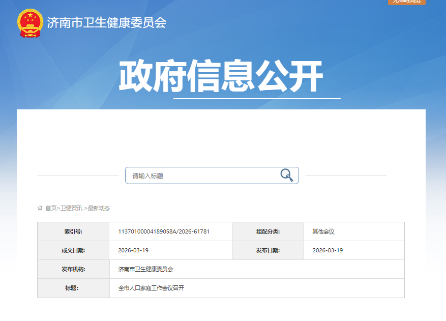 齐鲁晚报·齐鲁壹点记者在济南市卫生健康委员会获悉,3月18日,全市人口家庭工作会议召开。市卫生健康委分管负责同志参加会议并讲话。