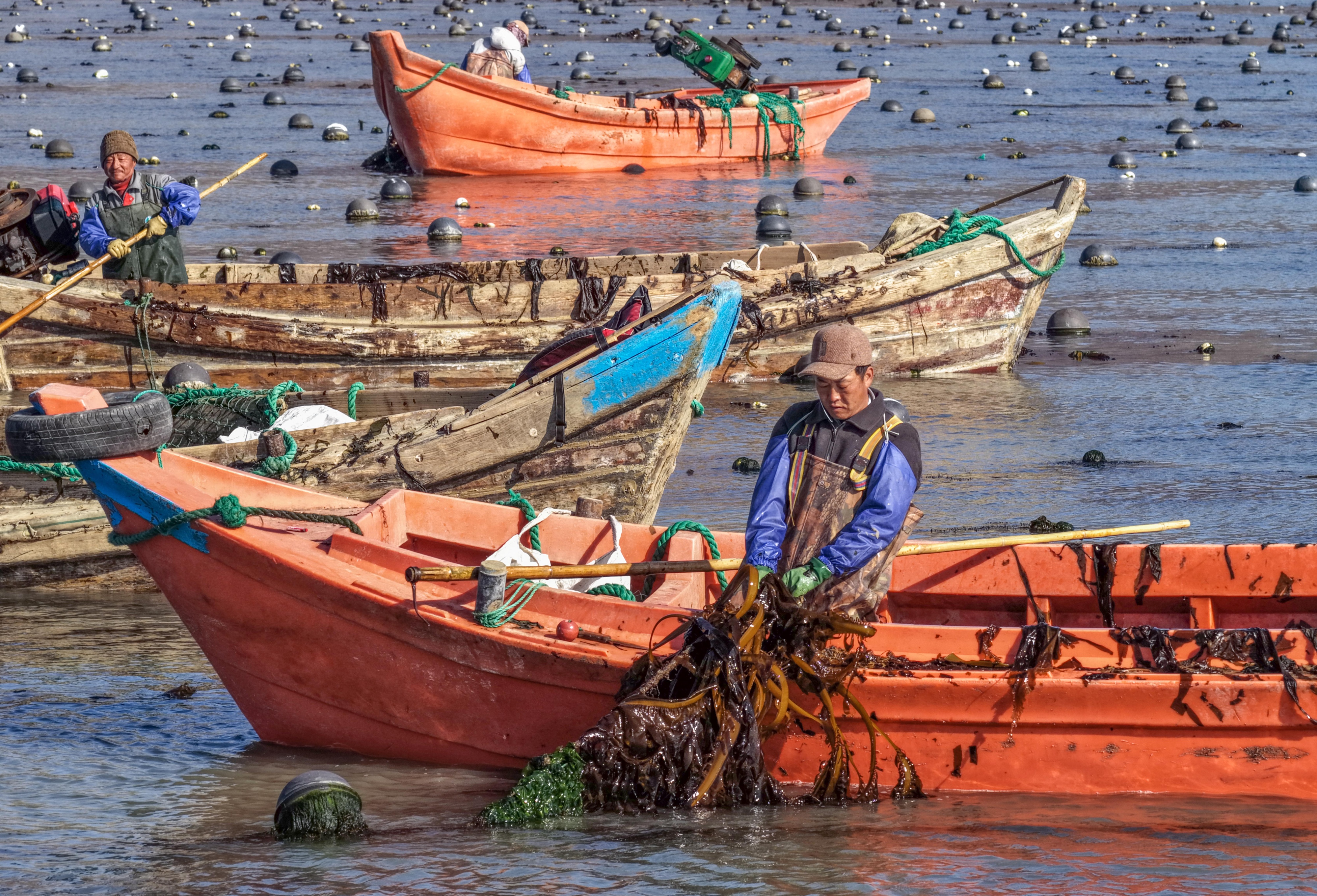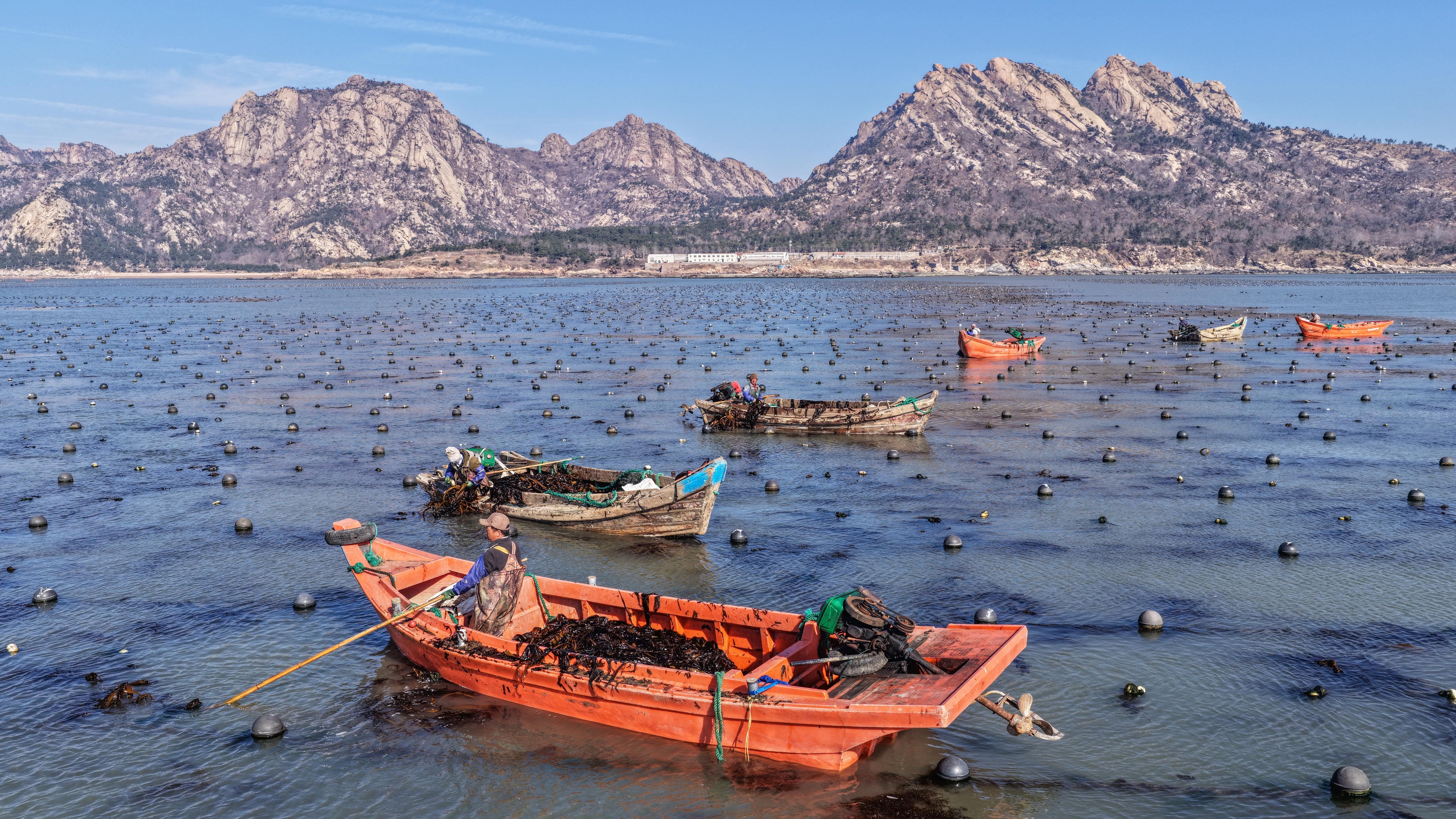 3月19日,在荣成市石岛管理区的南部海域,渔民在养殖区收割裙带菜。近年来,荣成市依托得天独厚的海洋资源,大力发展裙带菜养殖产业,成为全国重要的裙带菜生产和加工基地。荣成市通过科技创新、生态养殖和品牌建设,推动裙带菜产业向规模化、标准化、绿色化方向发展。裙带菜养殖产业的发展也为当地渔民提供了大量的就业机会,有效带动了渔民增收。(大众新闻记者陶相银通讯员李信君曲振威)