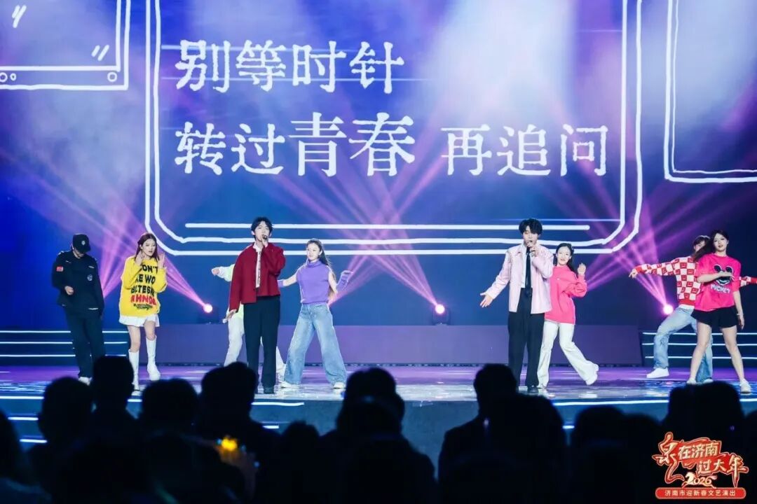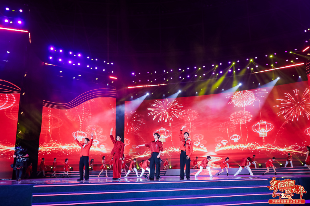 2月11日(农历腊月二十四),“泉在济南过大年·2026济南市迎新春文艺演出”在济南奥体中心体育馆举办。音乐表演(音乐剧)专业2022级学生麻松宇参与了歌曲唱跳串烧《关于我在地铁上莫名其妙干了碗鸡汤这件事》的演出,2023级学生李楠参与了开场串烧《我会一直顺+恭喜恭喜》节目的演出。轻快节奏搭配流畅整齐的舞蹈动作,瞬间点燃现场氛围,为整场晚会注入青春活力与潮流气息。