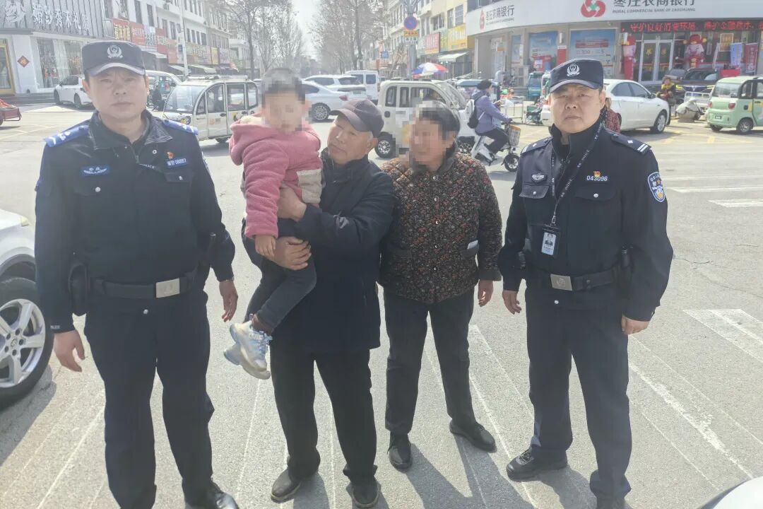 3月19日,枣庄市公安局山亭分局山城派出所接到群众报警,称一名7岁男童与家人走失。接警后,民警辅警立即赶到现场,因孩子年纪小,无法说清家庭信息。为尽快帮孩子找到家人,民警辅警一边向分局情指中心汇报相关情况,一边带着孩子沿街询问商铺、保安和路人。一位市民提供线索,称人工湖东侧有人正在寻找孩子。民警辅警立即带着孩子前往,确认正是孩子的奶奶。