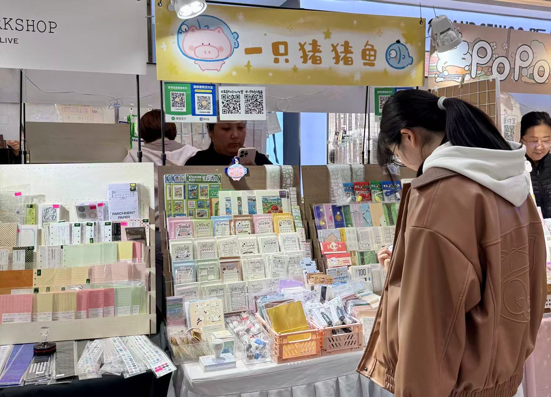 在凯德MALL B1中庭,数百个摊位紧凑排列,原创插画师的独立品牌、进口的复古胶带、以及本地手账人自制的“海鲜风味”限定贴纸琳琅满目。年轻人在摊位间熟练地翻捡着分装胶带,她们购买的不仅仅是文具,更是一种社交货币。