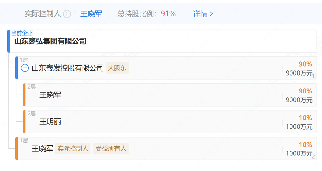 股权结构方面,鑫弘集团由山东鑫发控股有限公司(下称“鑫发控股”)持股90%,是鑫发控股旗下核心产业板块的主体企业之一。