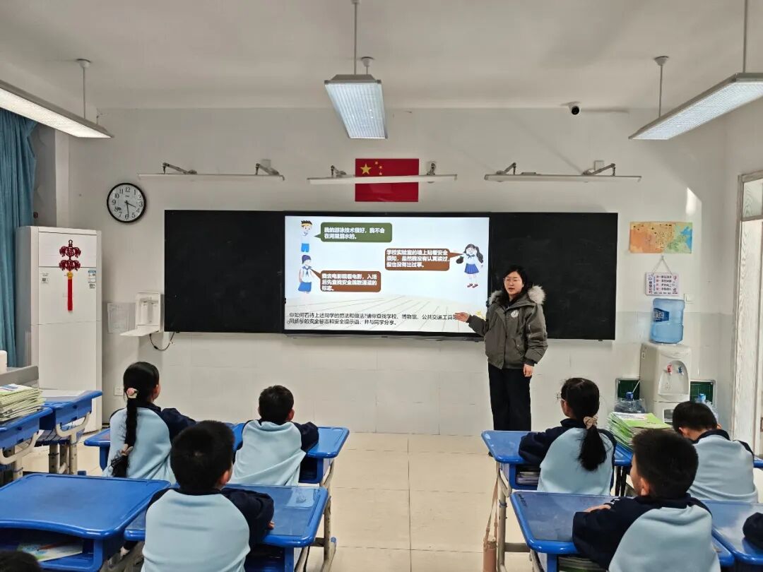 作为四年级一班的“大家长”,班主任郑秋霞老师的日常管理更是润物无声。每周的班会课,她都会做“安全微分享”;班级群里,她常转发各类安全提示;学生外出活动,她总要叮嘱“遇到事情找警察,发现危险要远离”。