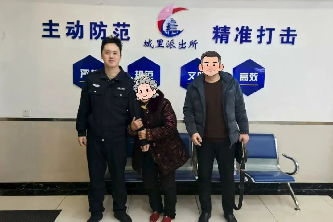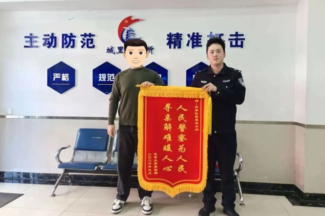 几天前,家住文登的王奶奶因和家人发生口角,一气之下离家出走。家人四处寻找无果,焦急报警。经文登警方初步研判,老人已乘车来到威海市区,家属立刻赶到城里派出所求助。时间一分一秒过去,天已经黑透了。民警不敢耽误,根据线索追踪轨迹、反复分析,最终推断老人进入辖区一处小区后便不见了踪影。小区楼栋多、楼道暗,他们一栋栋排查、一遍遍呼喊,不放过任何角落。终于,在一处僻静楼梯间,找到了蜷缩在楼道、又冷又委屈的王奶奶。见到民警,年过八旬的老人那紧绷的心松了下来。民警蹲在她身边,耐心安抚、细细劝解,像家人一样陪着她、开导她,一点点化解老人心里的委屈和隔阂。当晚将近12点,在民警的温柔劝说下,老人终于放下心结,跟家人返回家中。不久后,王奶奶的家人专程从文登赶到城里派出所,送来一面印着“人民警察为人民,寻亲解难暖人心”的锦旗。