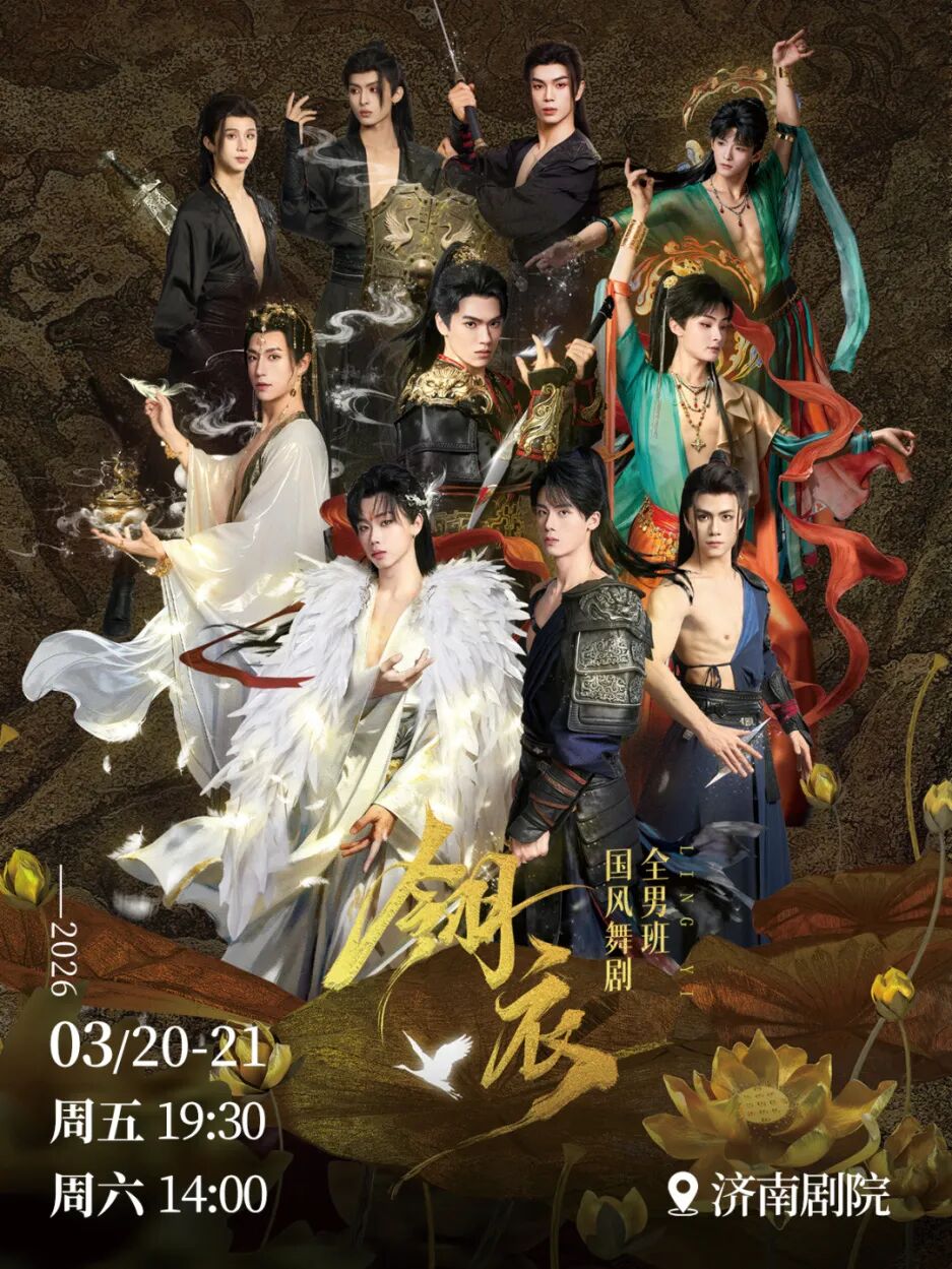 铠甲遇烽烟,翎羽舞河山,该剧由青年舞蹈家朱飞担任导演总编导,十二位科班出身国风美少年,将为观众奉上沉浸式110分钟美学盛宴。2025年底,该剧上海首轮八场演出,口碑发酵,大麦评分9.8分,2026年初苏州、杭州、南京、广州、长沙、北京等,多地演出刷爆全网,相关视频获千万级热度。
