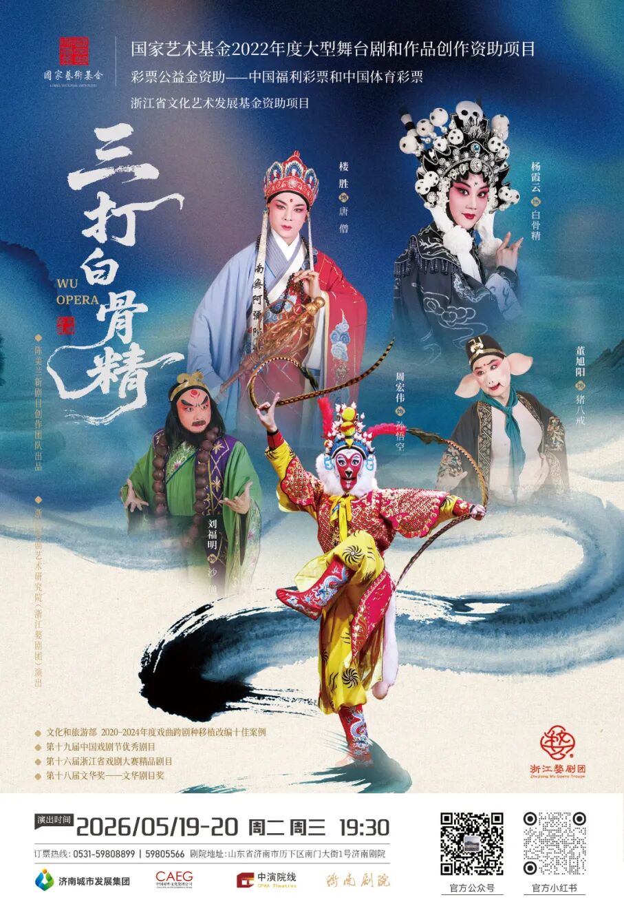 婺剧《三打白骨精》于2023年3月首演,2025年11月荣获中国文化艺术政府最高奖——第十八届“文华剧目奖”,成为新时代婺剧创新发展的标志性作品。该剧目取材于古典名著《西游记》,在忠于原著精神的基础上,坚持创造性转化、创新性发展,传承婺剧“武戏文唱、文戏武做”的艺术特色,融合“毯子功”“把子功”等传统技艺,并创新运用无人机、变脸、变装等现代舞台手段,既彰显传统韵味,又焕发时代气息。