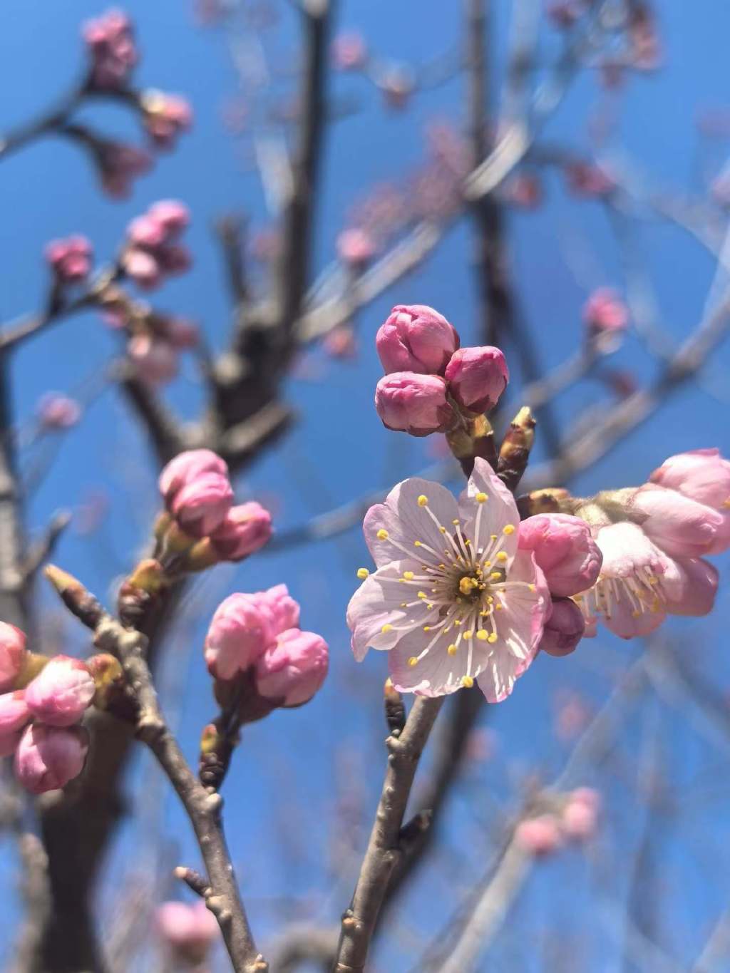 北宅几乎全域都有樱桃花,目前都在含苞待放,大崂樱桃谷等少数地方已有樱桃花绽放,盛花期预计在3月24日左右。
