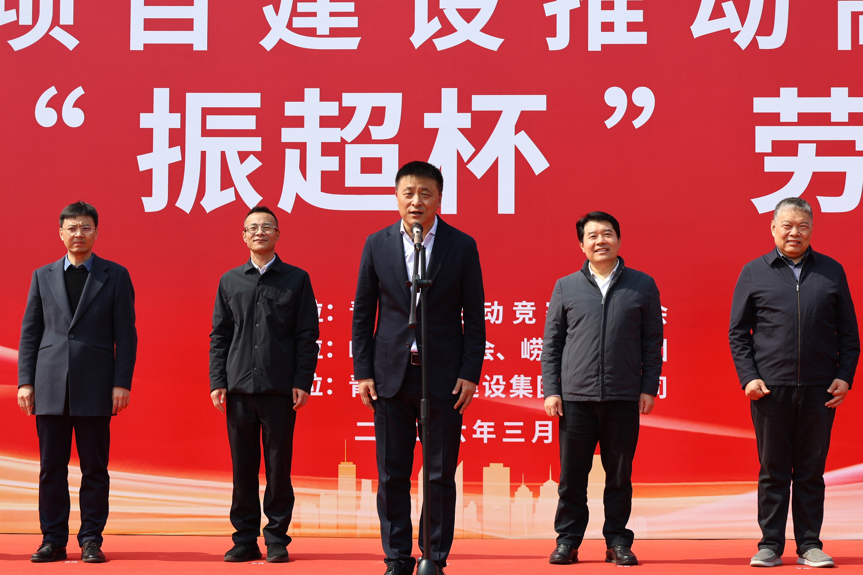 青岛市人大常委会副主任、市总工会主席、市劳动竞赛委员会主任张建刚出席仪式并宣布竞赛启动,号召全市各级工会组织和广大职工群众在劳动竞赛中比干劲、赛实绩、争一流,全面推动项目建设提速,助力经济社会高质量发展。