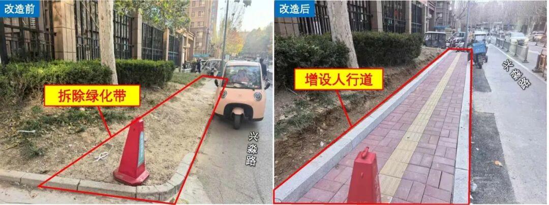 出行品质提升,让慢行"品质双优"。通过完善慢行通行空间、拓宽慢行通道、加强违停治理等措施,保障步行和骑行空间,提升慢行出行体验。兴淼路(卧龙路-阳光新路段) 等路段整治后,慢行环境显著改善,居民出行更安心。