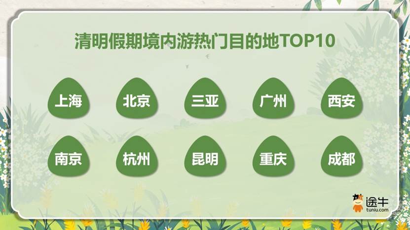 清明假期方面,2-3天的微度假成为主流之选。上海、北京、三亚、广州、西安、南京、杭州、昆明、重庆、成都等目的地截至目前预订热度排名靠前。