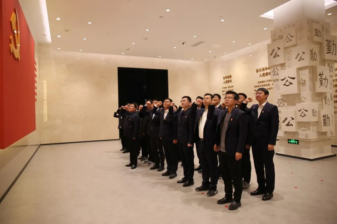 在宣誓厅,全体党员面向党旗,庄严重温入党誓词。铿锵有力的誓言,进一步强化了党员的身份意识与使命担当,激励大家始终坚守初心、恪守承诺,筑牢拒腐防变的思想防线。