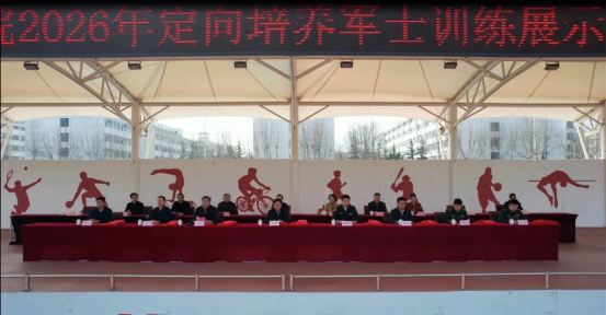 3月19日,泰山职业技术学院2026年定向培养军士训练展示暨入伍欢送会议在田径场举行。