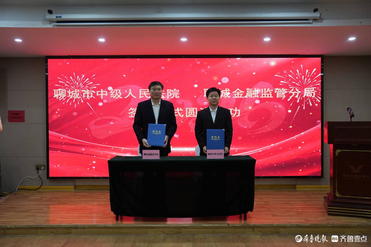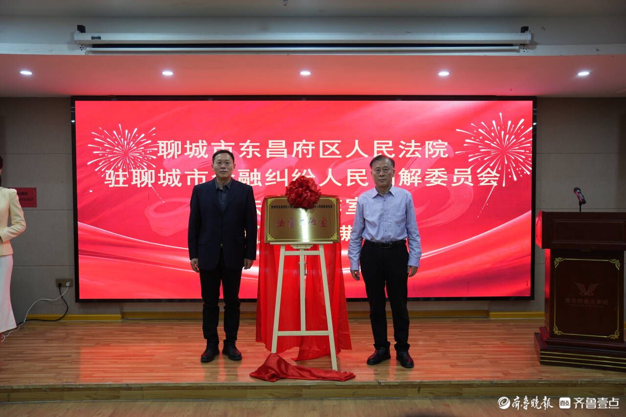 仪式上,聊城市中级人民法院党组书记、院长鲁统民与聊城金融监管分局党委书记、局长宗超签署了《关于府院联动护航金融高质量发展合作协议》和《关于建立金融消费纠纷诉调对接机制的意见》;聊城金融监管分局党委委员、副局长朱琳,聊城市东昌府区人民法院党组书记、院长黄鸿义为“聊城市东昌府区人民法院驻聊城市金融纠纷人民调解委员会法官工作室”揭牌。