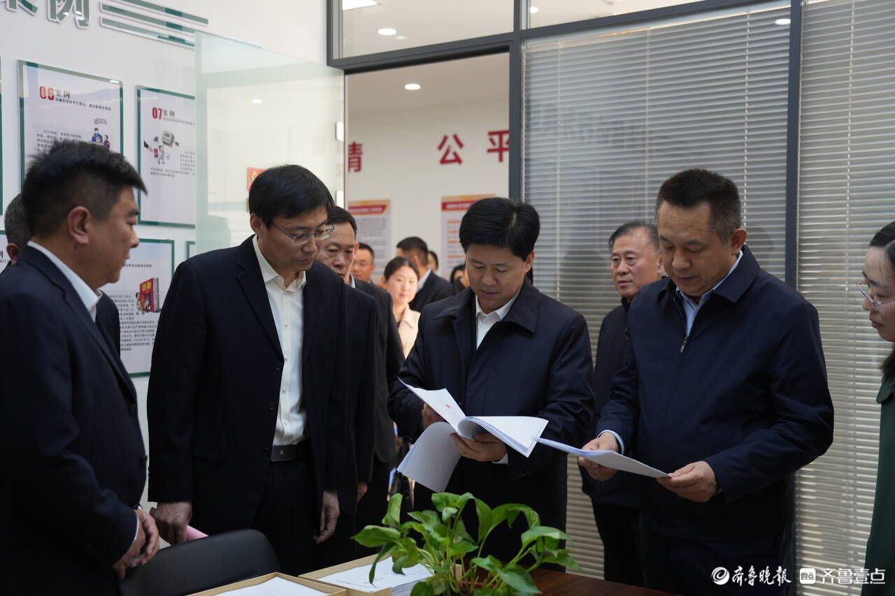仪式结束后,参会领导共同参观了金调委办场所,了解金调委人员配置与功能分区,查看调解制度、流程,翻阅、指导调解卷宗档案。