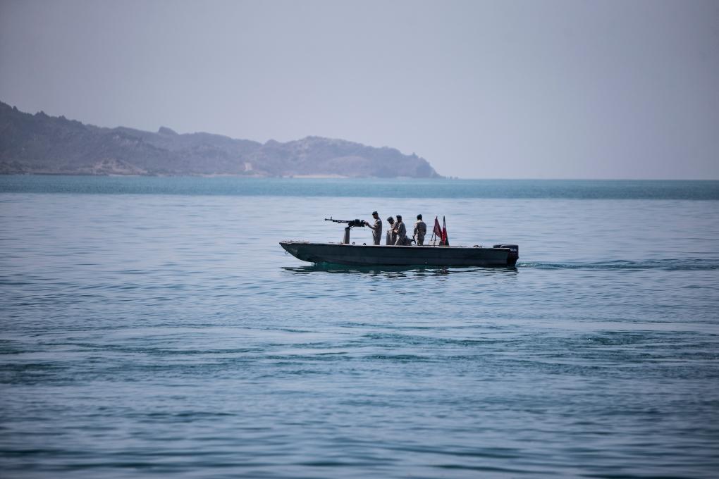 2019年4月30日,伊朗士兵在霍尔木兹海峡巡逻。新华社