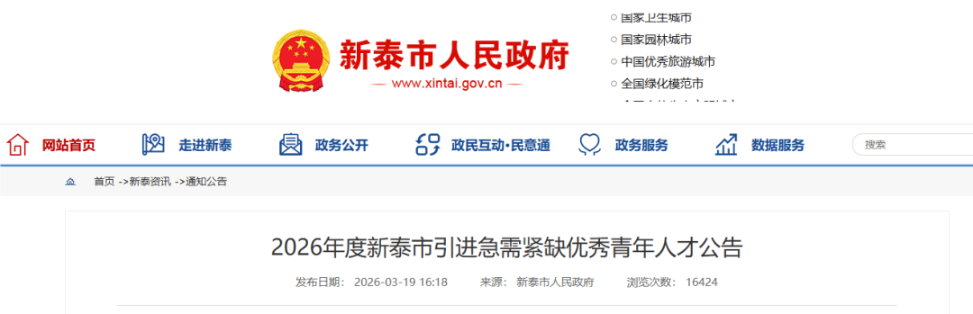 2026年度新泰市引进急需紧缺优秀青年人才公告