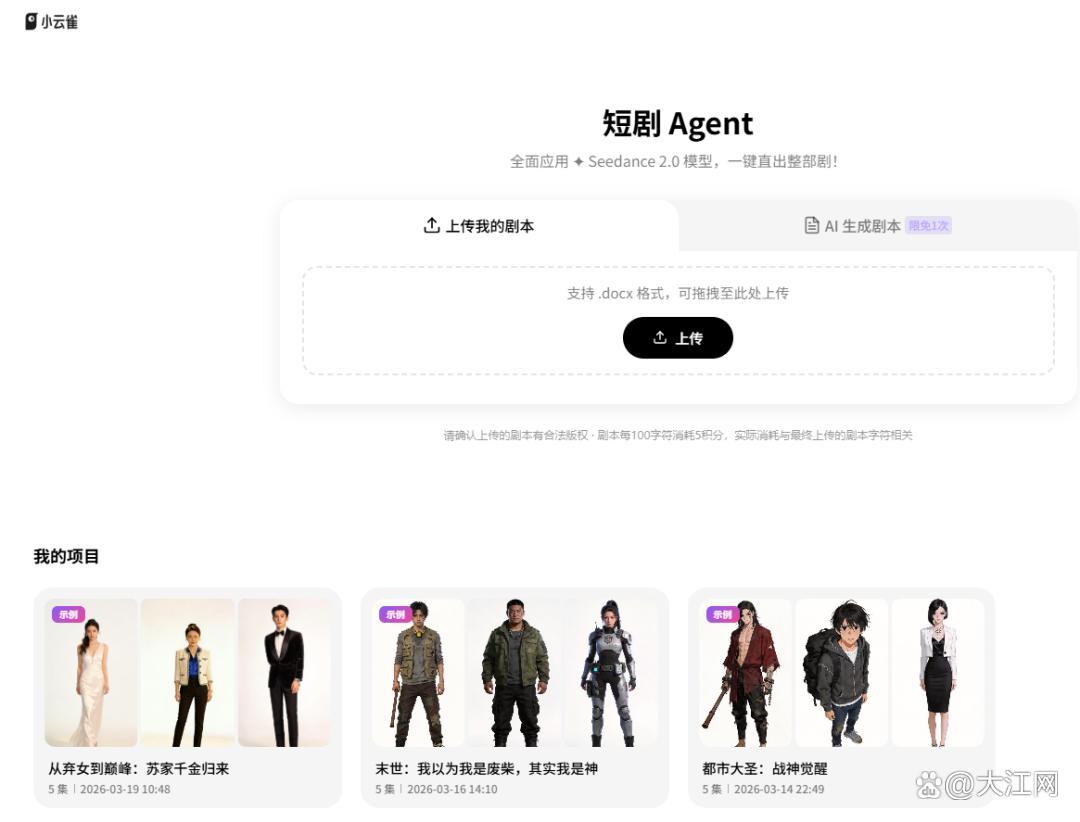 Seedance2.0短剧Agent上线 十万字剧本一键成片