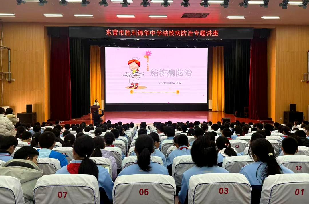 3月16日下午,东城服务协调中心胜东医院项目部荆树贞副主任医师走进东营市胜利锦华中学,为全校师生开展结核病防治专题宣讲。宣讲过程中,荆树贞医师结合校园防控实际,细致拆解结核病核心知识,从结核分枝杆菌这一传染源、飞沫传播等主要传播途径,到易感人群特征、咳嗽咳痰、低热盗汗等典型临床症状,再到科学预防措施、规范诊疗流程及疾病预后转归,逐一细致讲解,同时针对师生关心的结核误区、日常防护细节、校园消杀要点等内容展开科普,破除认知偏见。