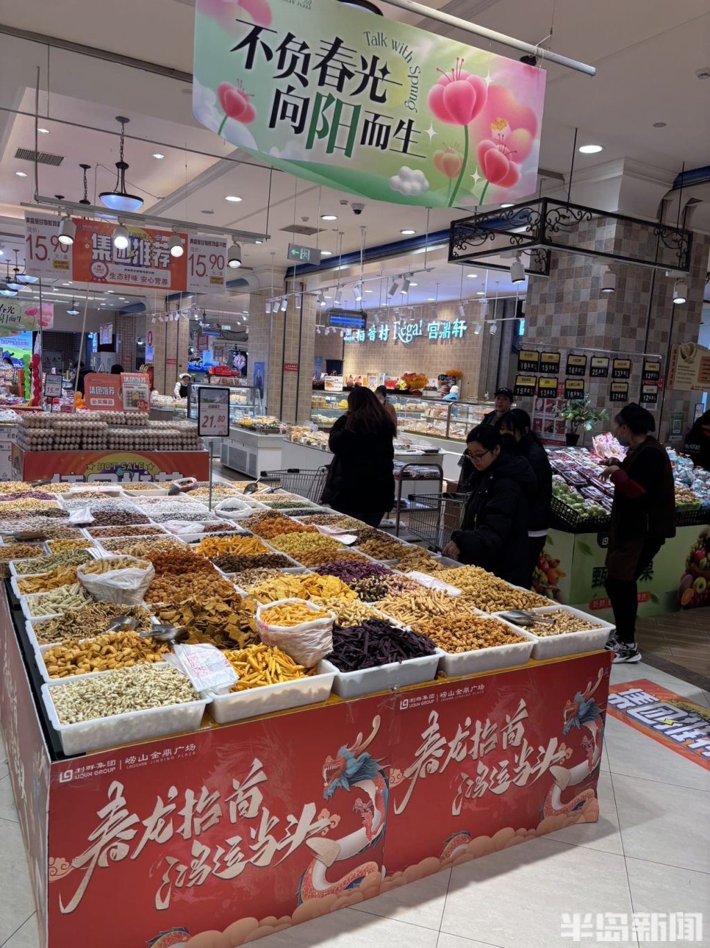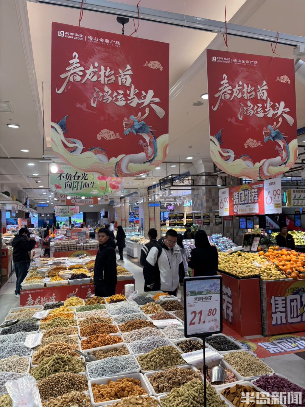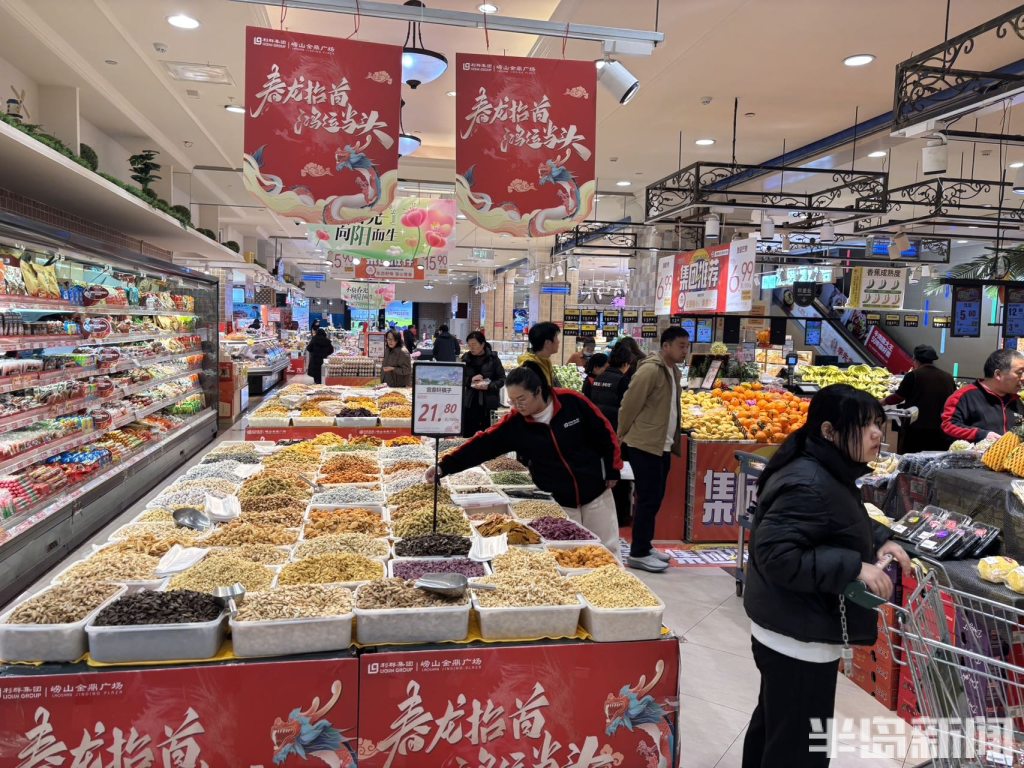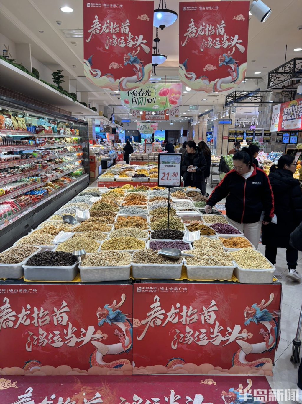 3月20日恰逢农历二月二“龙抬头”,在青岛香港东路一家商超内,各式口味的炒豆、棋子块整齐陈列,品类丰富、琳琅满目,吸引不少市民驻足挑选。二月二,除了理发祈福,吃炒豆也是当地传统习俗,炒豆与棋子块随之迎来销售旺季。摊位上各色口味统一定价,市民可随心混搭选购、一次尝遍多种滋味。(半岛全媒体记者何毅)