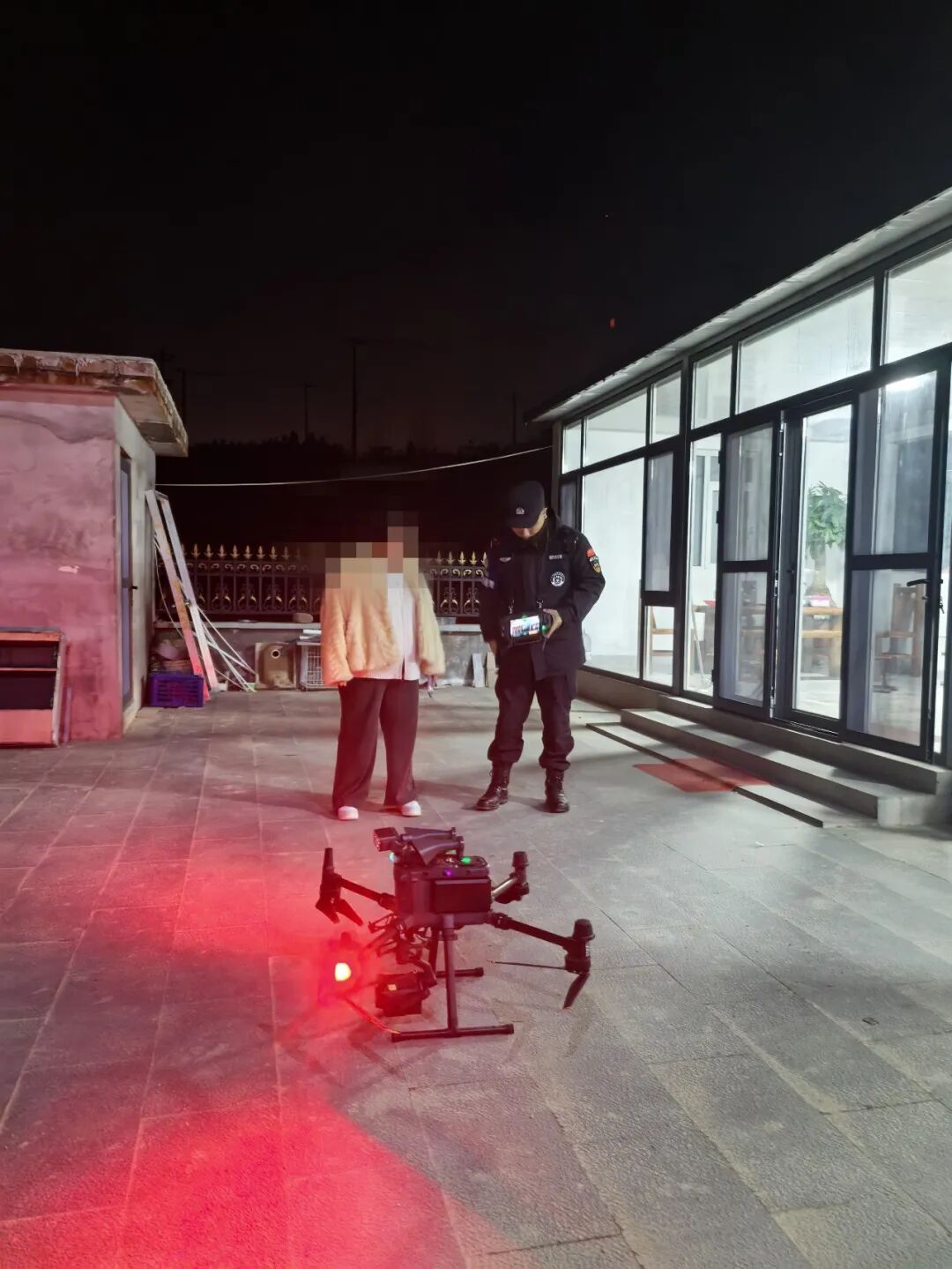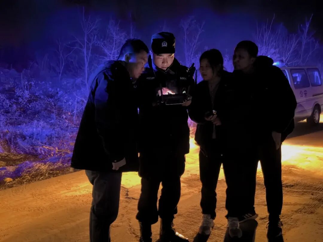 大队闻警即动、快速响应,第一时间调集警力,携带无人机等专业装备火速赶赴现场。抵达后,队员通过和养殖户的沟通,结合地形地貌研判牛走失方向,同步操作无人机升空开展立体搜寻,依托热成像技术对周边山坡、沟壑、林地等重点区域进行全方位、无死角排查。