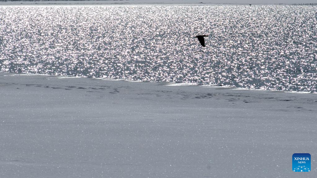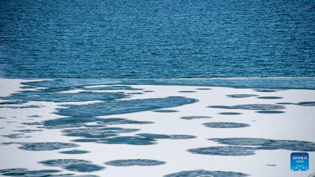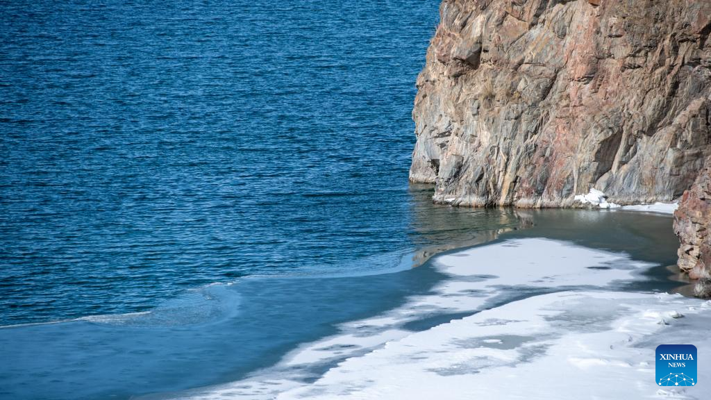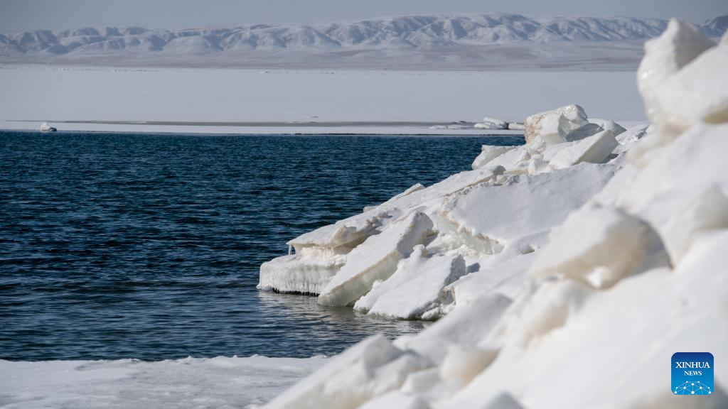 This photo taken on March 19, 2026 shows a view of Qinghai Lake, China's largest inland saltwater lake, in northwest China's Qinghai Province. With ice melting on the surface of the lake, Qinghai Lake begins its spring season. (Xinhua/Pema Yangtso)