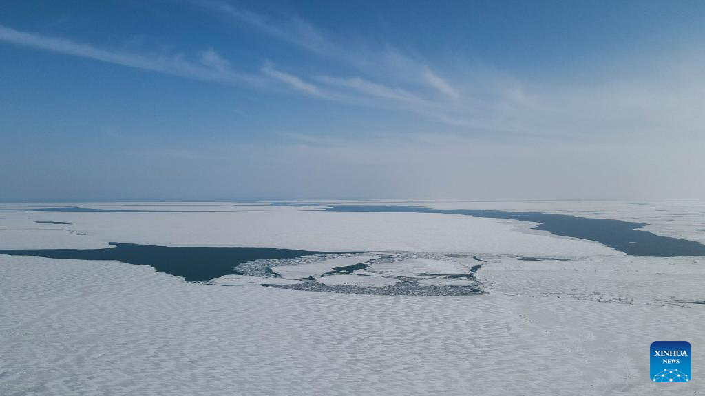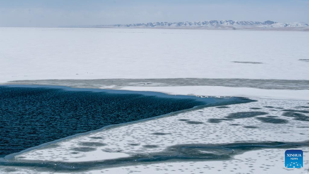 This photo taken on March 19, 2026 shows a view of Qinghai Lake, China's largest inland saltwater lake, in northwest China's Qinghai Province. With ice melting on the surface of the lake, Qinghai Lake begins its spring season. (Xinhua/Li Linhai)