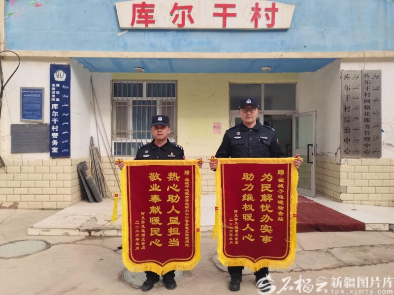 3月18日,阿克苏边境管理支队破城子边境检查站民警收到了来自广东的感谢信和两面锦旗。马维全摄