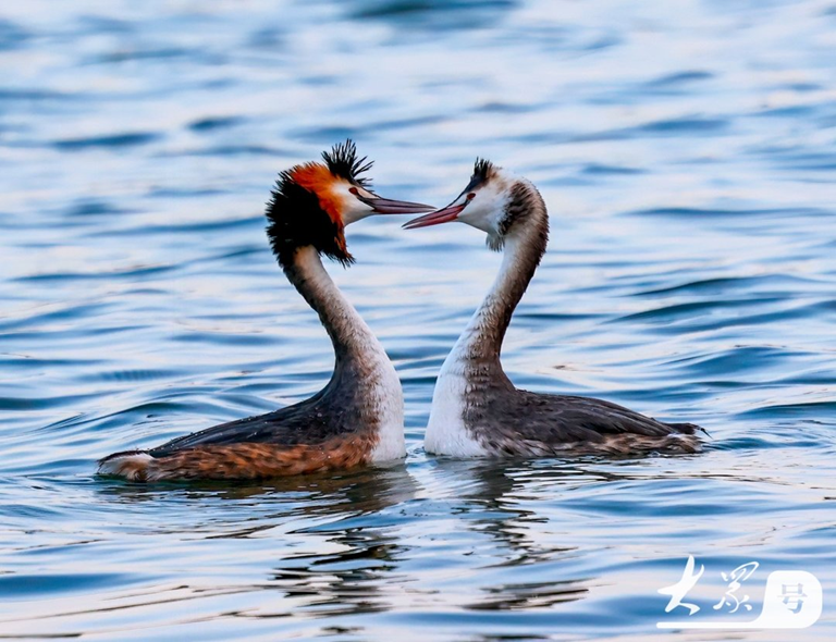 A pair of grebes engage in their courtship ritual. [Photo/Dazhong News]