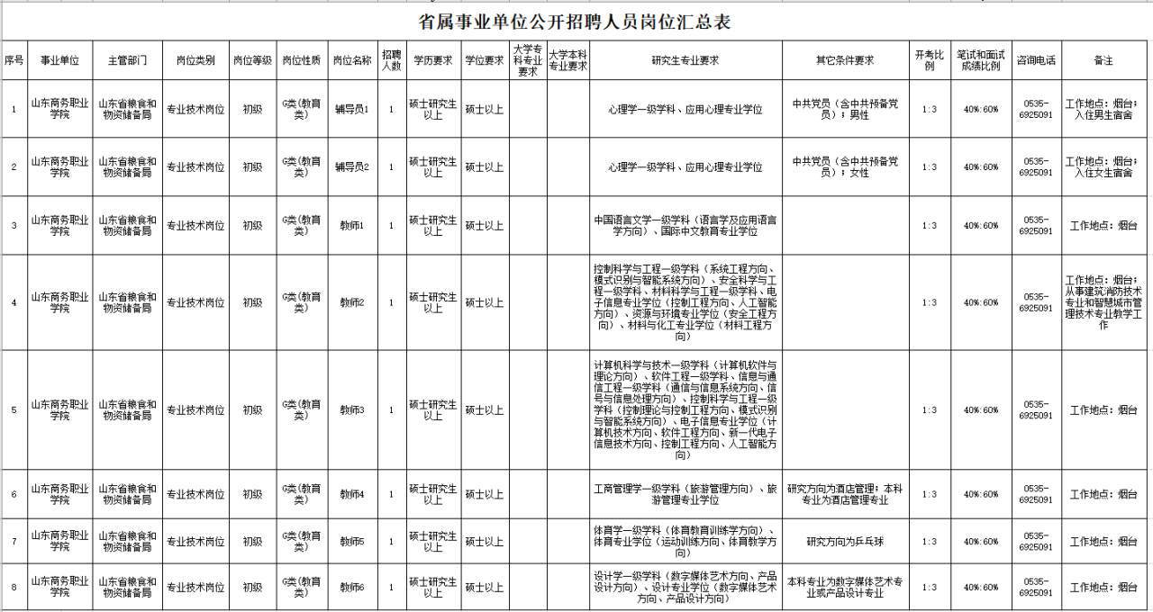 近日,山东商务职业学院发布招聘公告,2026年面向社会公开招聘初级专业技术岗位人员8人。具体岗位及条件如下: