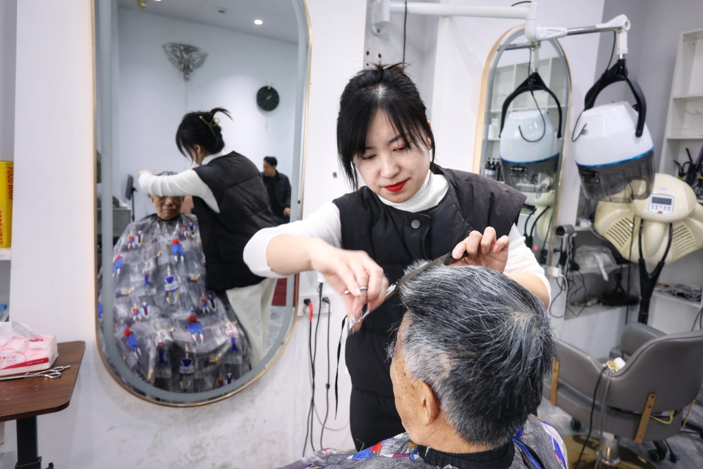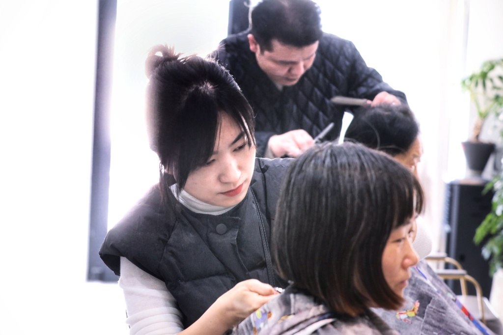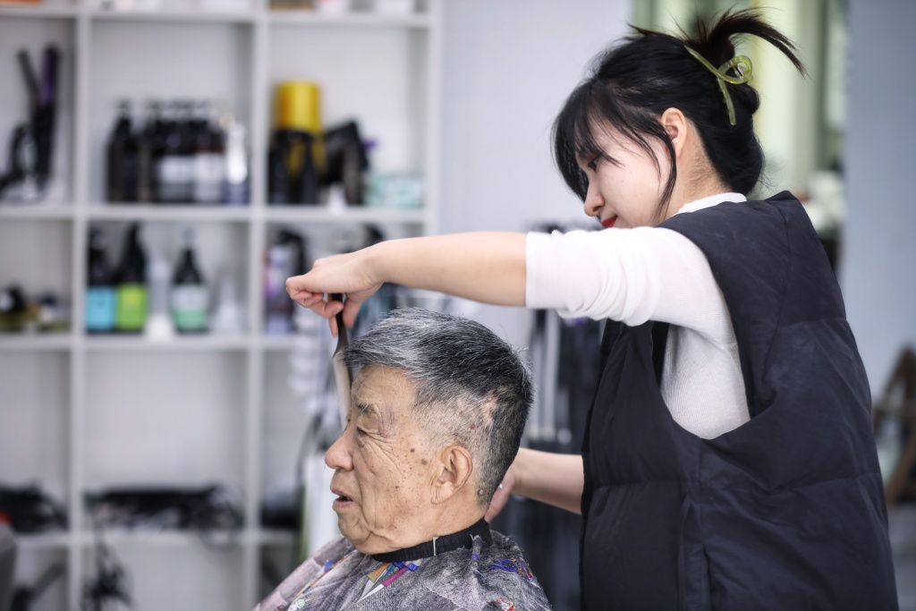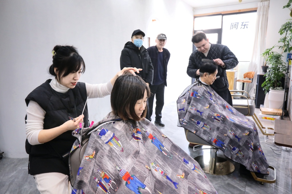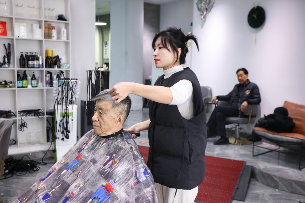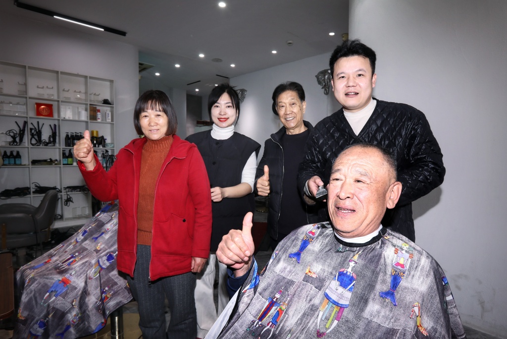 这一天上午,姗姗的理发店没有对外营业,而是专门为社区的老人提供免费公益理发。