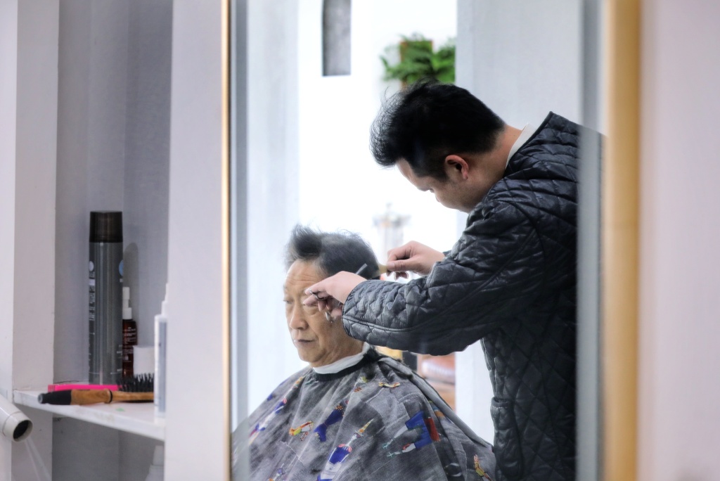 待人镜前坐定,剪刀在姗姗和阿东的手中轻快游走。不过几分钟,一位老人便精神焕发地站起身,摸着刚理好的头发,对着镜子左看右看,不住点头:“剪得好!清爽!”老人们陆续剪完“龙头”,满意地转身道谢,姗姗笑着摆摆手:“应该的。”