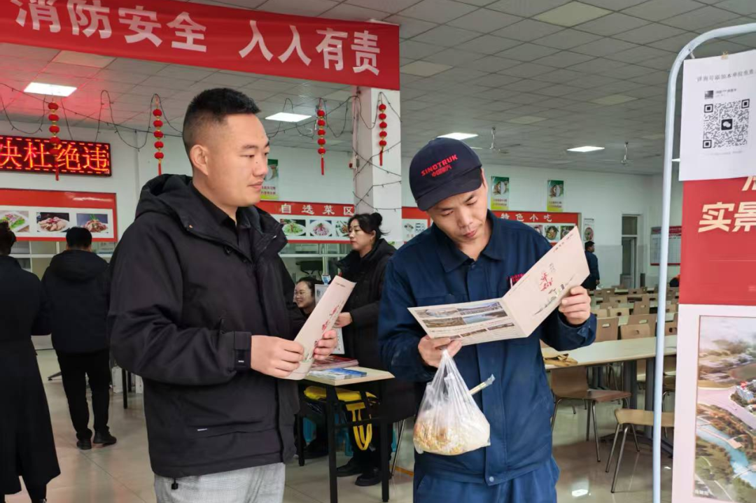 本次活动整合了辖区内11家优质房企、16个精品楼盘,深入辰欣药业、重汽集团、鲁抗医药等重点企业。活动现场,各房企通过设置宣传展板、发放宣传资料、安排专业销售人员讲解等方式,全方位展示楼盘特色、优势及优惠信息。同时,城乡建设和交通局工作人员现场解读当前房地产市场最新政策,及时解答企业职工的购房疑问。